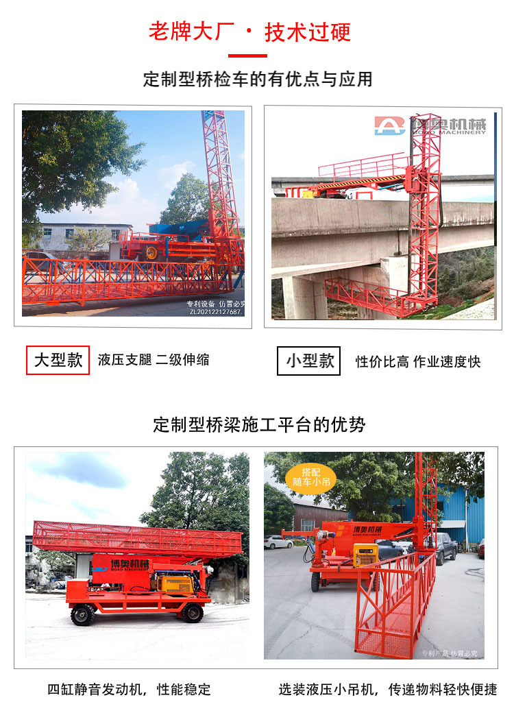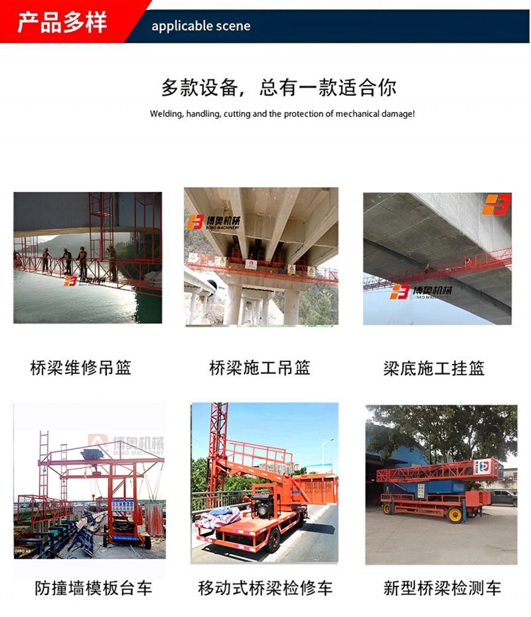 我們公司(sī)與中交、中鐵(tie)、中建等大型(xing)企業單位建(jiàn)立長期友好(hǎo)的合作關系(xì);積累了許許(xu)多多的标杆(gan)項目工程;這(zhe)也充分展示(shì)了我公司具(ju)備很大的實(shi)力和技術;一(yi)分錢一分貨(huo),我們秉承産(chǎn)品品質與服(fu)務至上的宗(zōng)旨,不斷提高(gao)産品和服務(wù)質量。市面上(shang)出現雷同的(de)産品,爲了保(bǎo)護廣大用戶(hù)的合法權益(yi),請大家認真(zhēn)辨識,選購正(zhèng)品,安全高效(xiào)施工。強烈推(tuī)薦公司産品(pin):橋梁排水管(guǎn)安裝設備、單(dān)邊橋梁檢測(cè)車、防撞牆模(mo)闆台車、橋梁(liáng)施工吊籃、固(gù)定式橋梁檢(jian)查小車。
