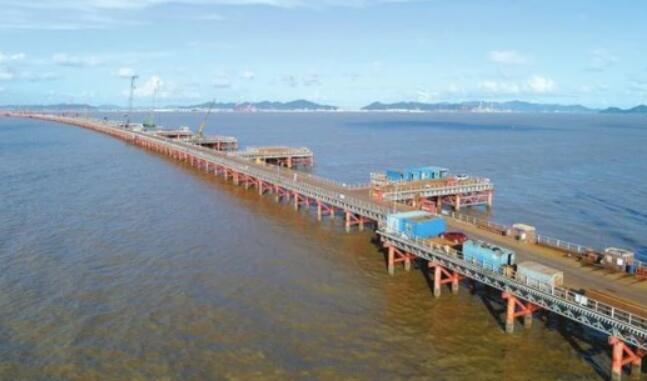 黃茅(mao)海大橋轉(zhuǎn)入承台施(shi)工 102根樁基(jī)145天紮根海(hai)底