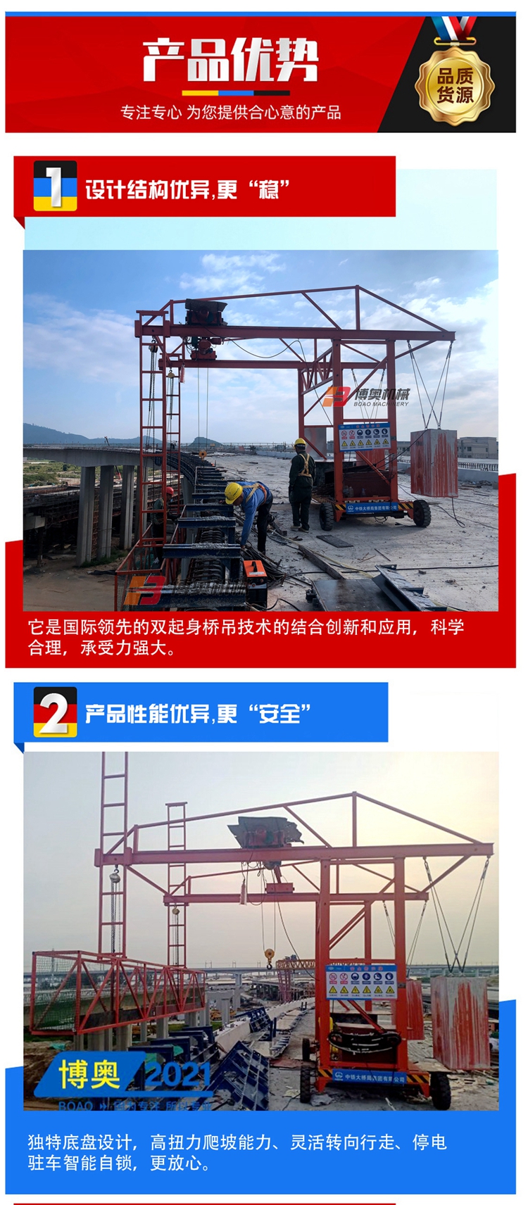 橋(qiáo)梁防撞牆(qiang)模闆吊裝(zhuang)設備多重(zhòng)用途,運輸(shū)、吊模、裝模(mo)皆☔可,電動(dòng)㊙️直驅,實用(yong)性強,多快(kuai)好省