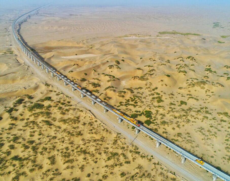 和若(ruo)鐵路位于新疆維(wéi)吾爾自治區和田(tian)地區和巴音郭楞(leng)蒙古自治州境内(nei),全線共有特大橋(qiáo)19座,其中若克雅特(te)大橋長9.736公裏,平均(jun1)墩高24米,最高橋墩(dun)達35米,是全線最高(gao)特大橋。