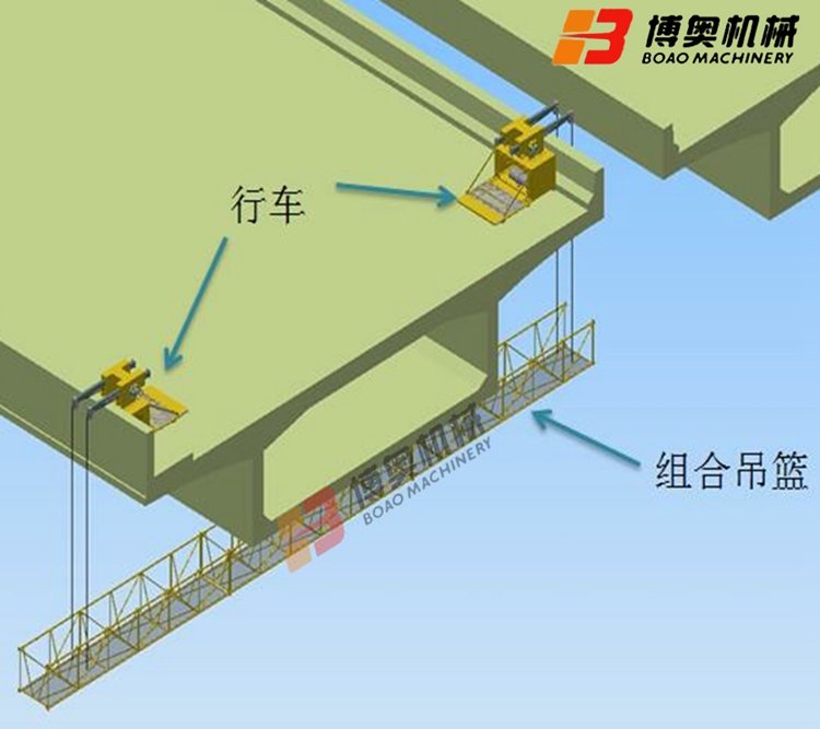 現在橋梁(liang)已經成爲了(le)一個城市的(de)代表建築之(zhī)一,不🛀🏻過橋🍉梁(liáng)主要的任務(wu)還是爲了方(fāng)便人們的出(chū)行,人們在路(lù)🆚上所花費的(de)時間。縮短起(qi)點到終點之(zhi)間的距離。所(suǒ)以我🧑🏽🤝🧑🏻們必須(xu)注重橋梁的(de)健康問題,其(qí)關系到出行(hang)人們的安全(quan)。也就是安全(quán)問題,橋梁的(de)健康安全需(xū)要借助其他(ta)設備的幫助(zhu)才能完成,其(qí)中主要的就(jiù)是橋梁檢查(cha)平台了,其主(zhu)要是橋下♻️形(xing)成安全的工(gōng)作平台。橋梁(liang)檢查平台是(shì)由行車和吊(diào)籃組成,行車(che)寬17米。重約3噸(dūn)。單台可垂直(zhí)起重1000kg。設有配(pei)重架,可根據(ju)需要随時增(zēng)減配重,吊籃(lán)有标準款和(hé)定制款,标準(zhun)款每節長3米(mi),重106kg,可根據橋(qiao)梁寬度進行(háng)組⭐合相應長(zhang)度作爲橋梁(liang)梁底作業平(píng)台。