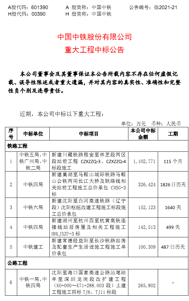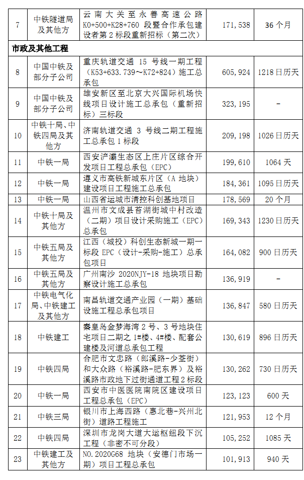 中(zhong)國中鐵(tie)近期中(zhong)标重大(da)工程情(qing)況一覽(lǎn)......