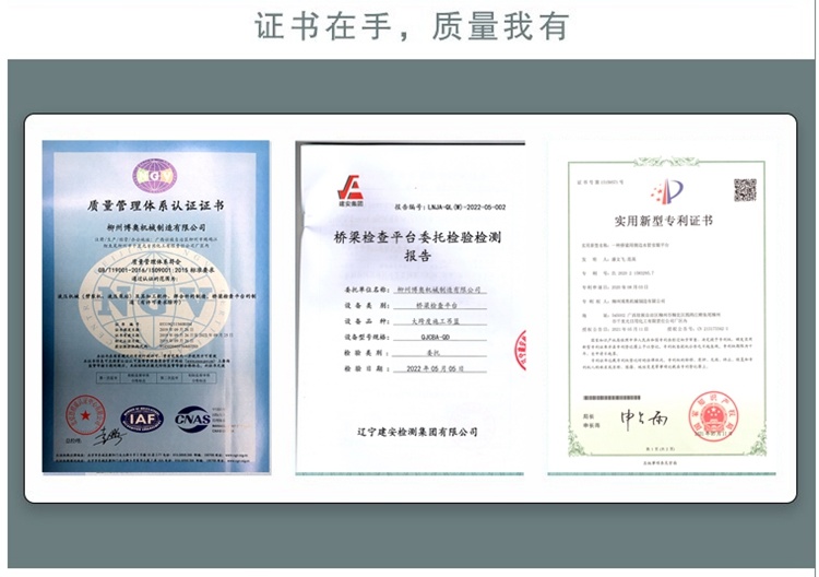 我們公司(sī)與中交、中鐵、中(zhōng)建等大型企業(yè)單位建立長期(qi)友好的合作關(guan)系;積累了許許(xu)多多的标杆項(xiang)目工程;這也充(chong)分展示了我公(gong)司具備很大的(de)實力和技術;一(yī)分錢一分貨,我(wǒ)們秉承産品品(pǐn)質與服務至上(shàng)的宗旨,不斷提(ti)高産品和服務(wu)質量。市面上出(chū)現雷同的産品(pin),爲了保護廣大(dà)用戶的合法權(quan)益,請大家認真(zhēn)辨識,選購正品(pǐn),安全高效施工(gōng)。強烈推薦公司(sī)産品:橋梁排水(shuǐ)管安裝設備、單(dan)邊橋梁檢測車(che)、防撞牆模闆台(tái)車、橋梁施工吊(diào)籃、固定式橋梁(liang)檢查小車。