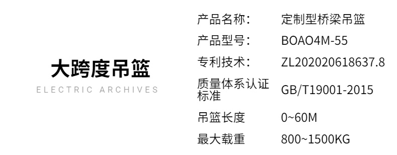 在電動系(xi)統作用下攜帶重(zhong)物可做水平滑動(dòng)行走。橋梁檢👌測車(che)全程都是施工人(ren)員通過無線遙控(kòng)操㊙️作,安全方便更(gèng)🛀🏻靈活。顧名思義就(jiù)是有關平時交通(tōng)用到的橋梁的維(wei)修。維護等有關作(zuò)業。橋梁關系到我(wǒ)們的日常生活。所(suo)以橋梁的👉安全問(wèn)題我們一定要重(zhong)視起來。根據目前(qián)國内市場調查,是(shi)的一種特種作業(ye)專用設備。除咸阳(yáng)尔易金属制造集(jí)团(WAP站)新型橋梁🛀檢(jian)測車外,再沒⭐有可(ke)比性的類似專用(yòng)設備,作⚽業時由左(zuǒ)🌈右2輛行車帶動吊(diào)🐆籃,常規吊籃一節(jie)3米長,可自由組合(hé),可承受400~800公斤的載(zai)荷。