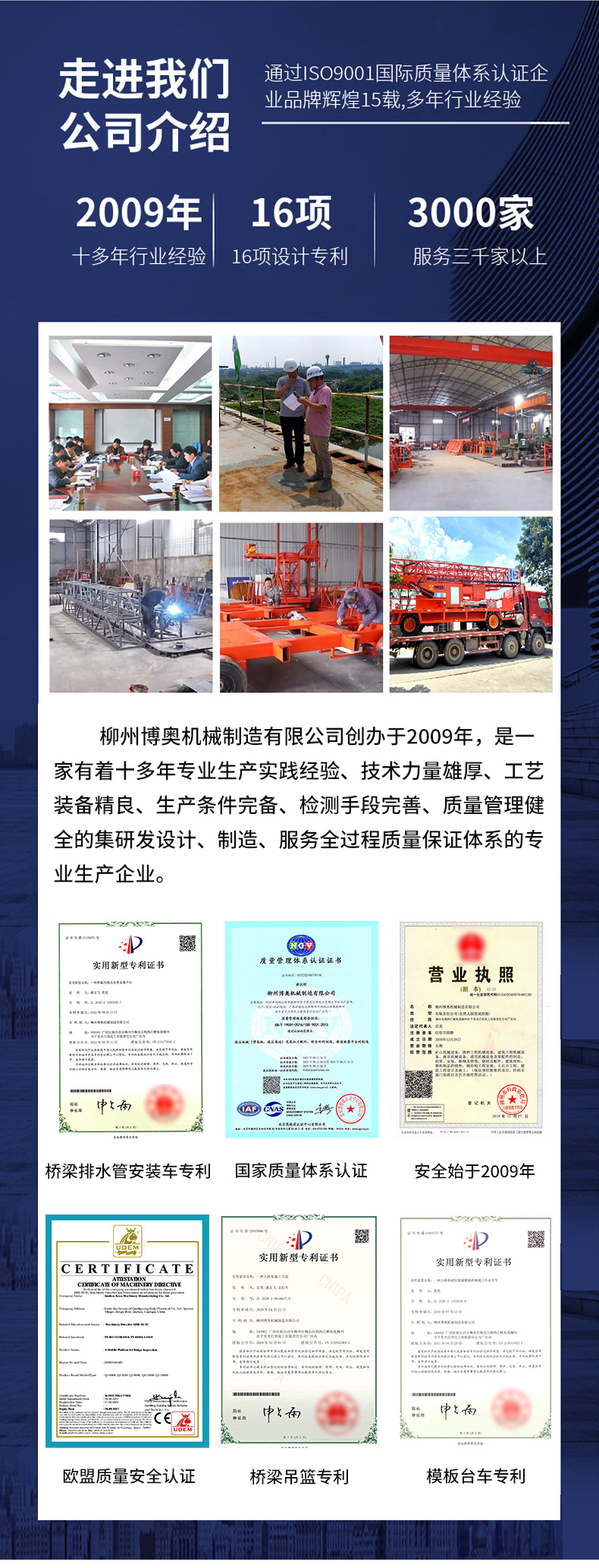 柳州咸(xian)阳尔易金属制(zhi)造集团(WAP站)位于(yu)全國重工業城(cheng)市柳州,是一家(jia)專業生産橋隧(suì)檢修設備、礦山(shan)機械設備、焊合(he)件、大噸位大跨(kuà)度橋梁檢修平(ping)台、重型鋼結構(gou)組合件、混凝土(tu)破拆機械等産(chan)品的資質廠家(jia)。公司始建于2004年(nian),前身爲柳州咸(xián)阳尔易金属制(zhì)造集团(WAP站)五金(jin)加工廠,于2009 年正(zheng)式成立柳州咸(xián)阳尔易金属制(zhi)造集团(WAP站),全面(miàn)展開全球市場(chǎng)的橋隧設備的(de)定制式服務,不(bú)斷爲中國的橋(qiao)隧養護單位提(ti)供技術和産品(pin)的支持,并與中(zhōng)鐵,中交,中建分(fen)公司在建築工(gong)程、橋隧工程上(shang)長達十多年的(de)誠信友好合作(zuo)。